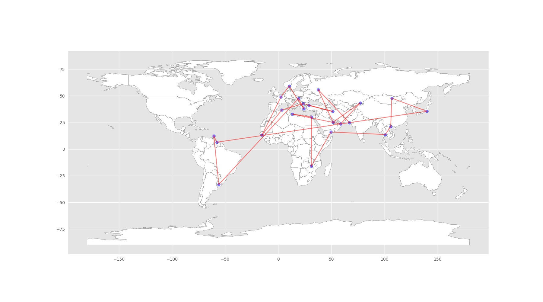And so, in a moment of what I can only describe as sleep-deprived inspiration (parents, you know what I’m talking about), I decided to combine these two seemingly unrelated interests. The result? A project that uses the Simulated Annealing algorithm to solve a Traveling Salesperson Problem based on the nations mentioned in TMBG’s “Alphabet of Nations”. Because why not?